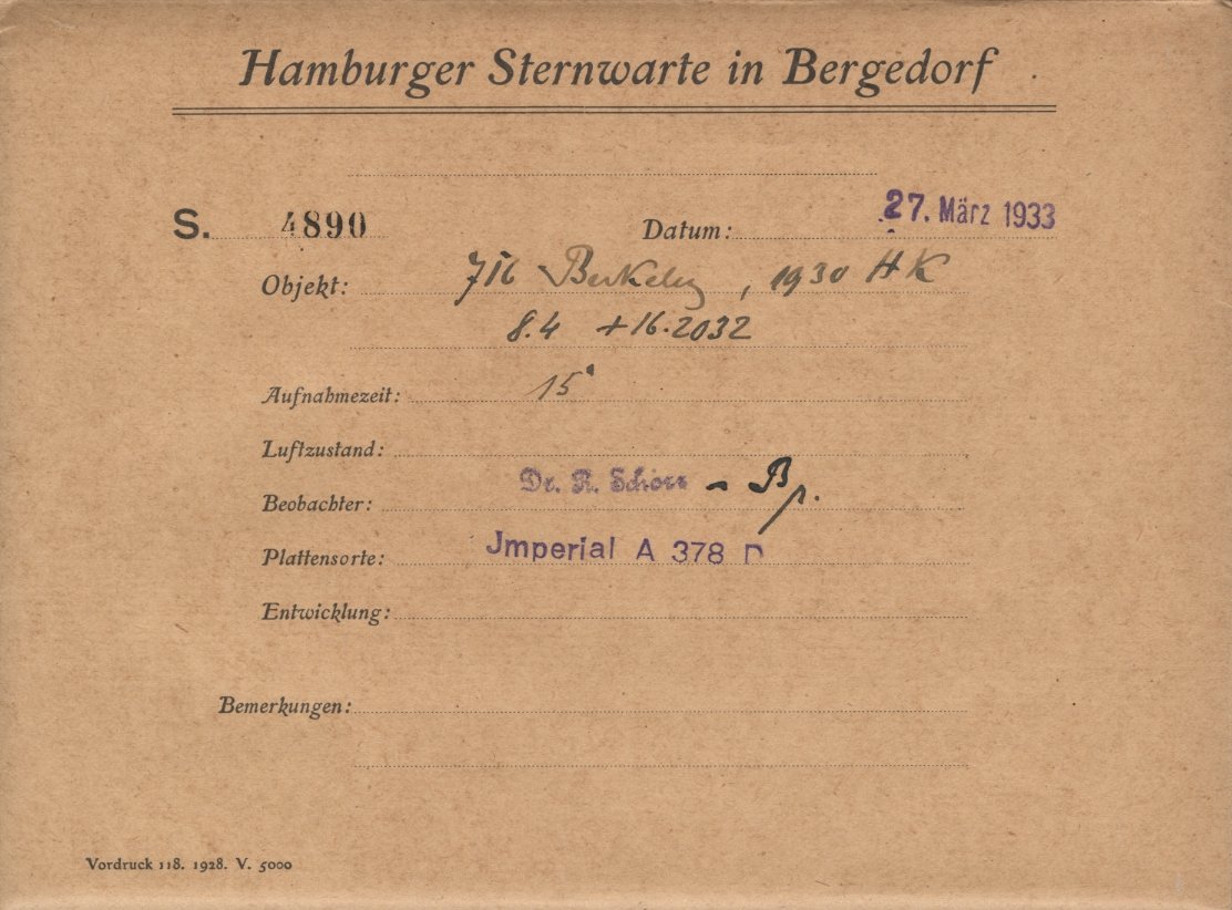 Envelope from 1m-Spiegelteleskop (Hamburg)