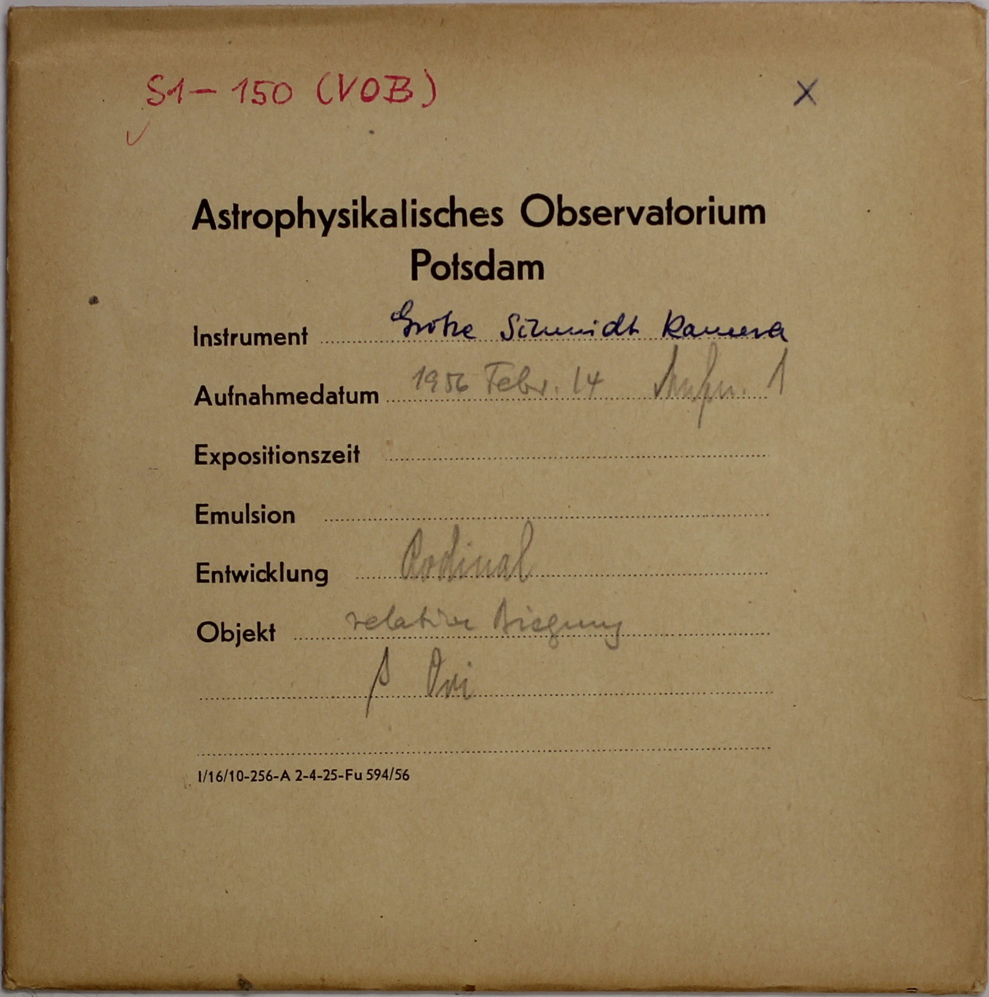 | Archive: | Great Schmidt Camera (Potsdam) |