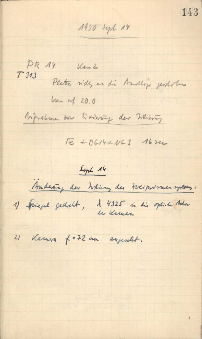| Logbook title: | 1m-Spiegelteleskop. Technische Aufnahmen und instrumentelle Untersuchungen. 2. |
