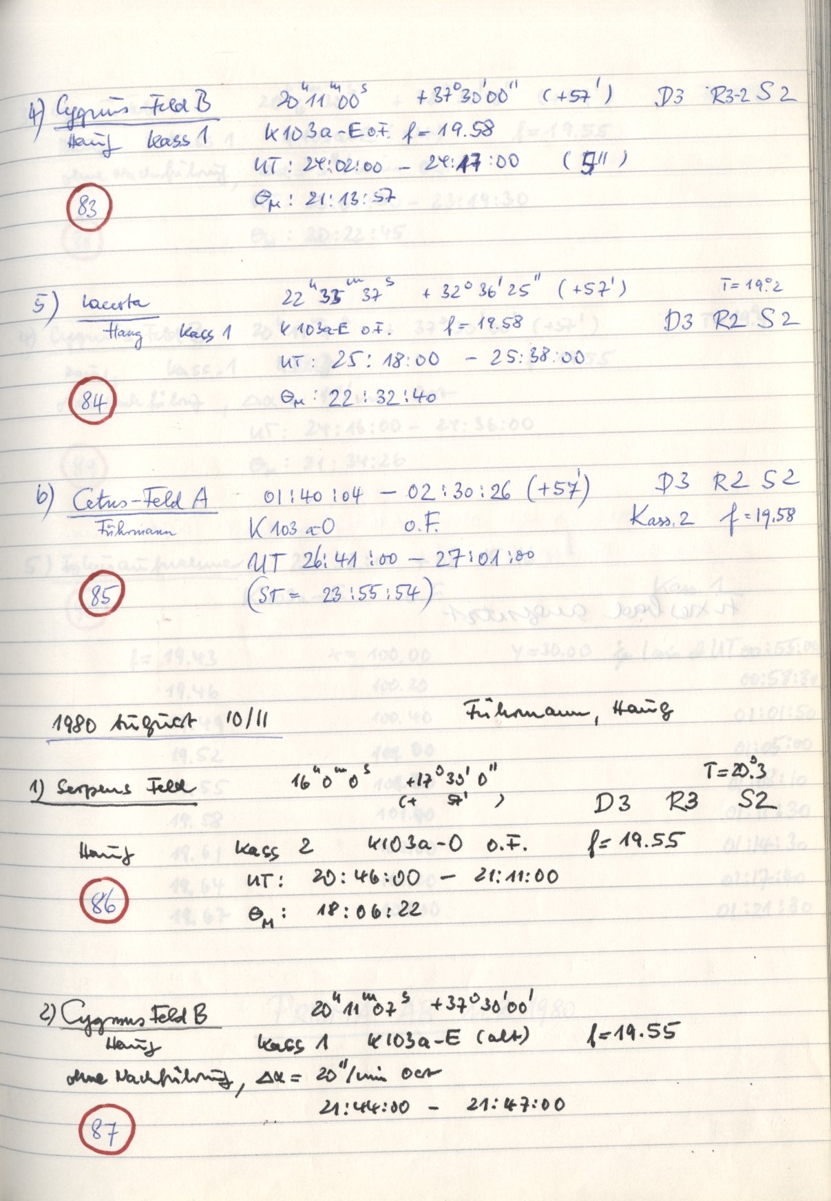 Logbook title: | Schmidt 80cm. 1. |