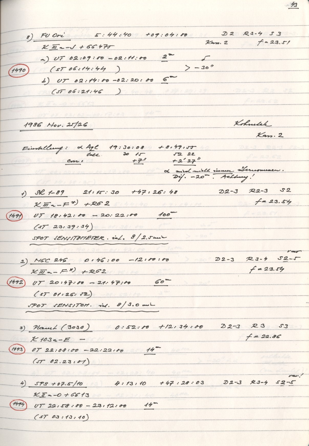 Logbook title: | Schmidt 80cm. 5. |