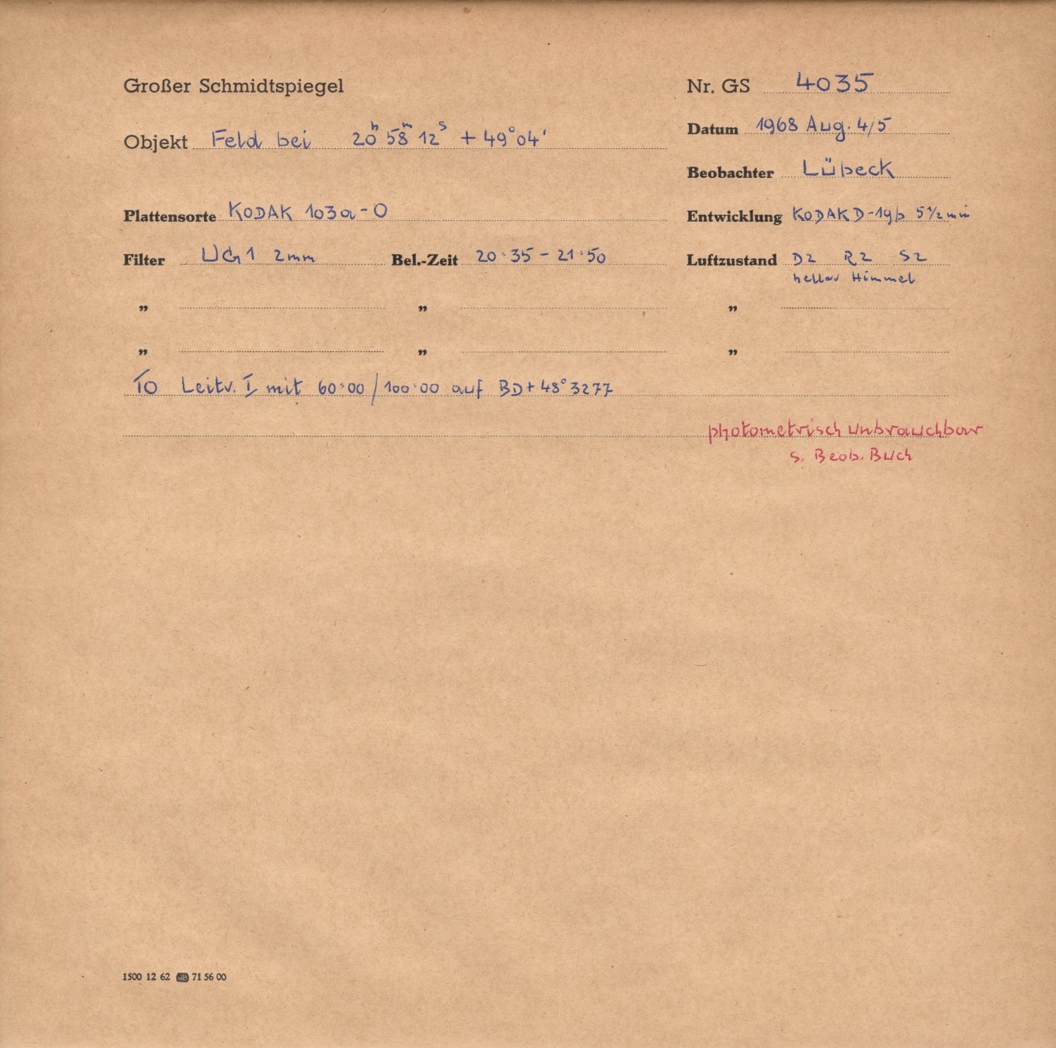 | Observer name: | Lübeck (1944-??) |